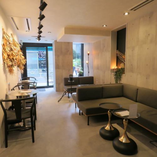 入口をくぐるとシンプルな内装で統一された、落ち着きのある大人の空間が広がります。店内は、温かみのある照明が心地よく、ゆったりと寛げる雰囲気。テーブル席やゆったりと座れるソファ席、個室も完備しており様々なシーンでご利用いただけます。